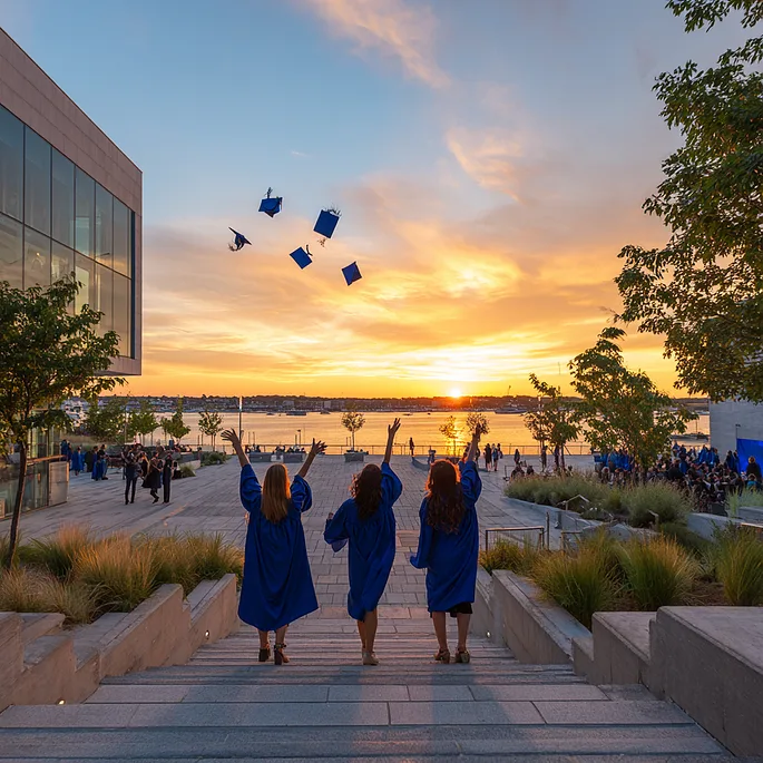 UMass Boston's waterfront access is genuinely special. The Harborwalk runs along the campus perimeter with unobstructed views of the Boston skyline, the harbor islands, and the water. For graduation photos, this backdrop does something your diploma ceremony footage cannot: it contextualizes your achievement within the actual city that's going to be part of your professional life.